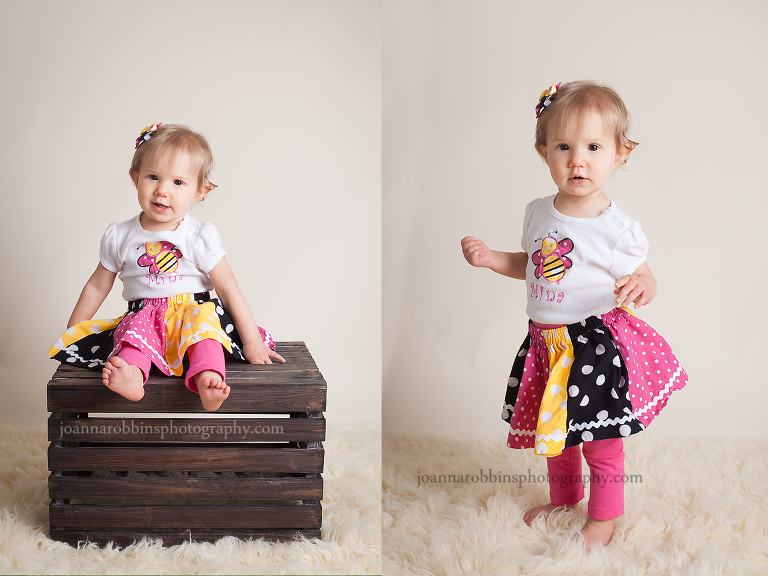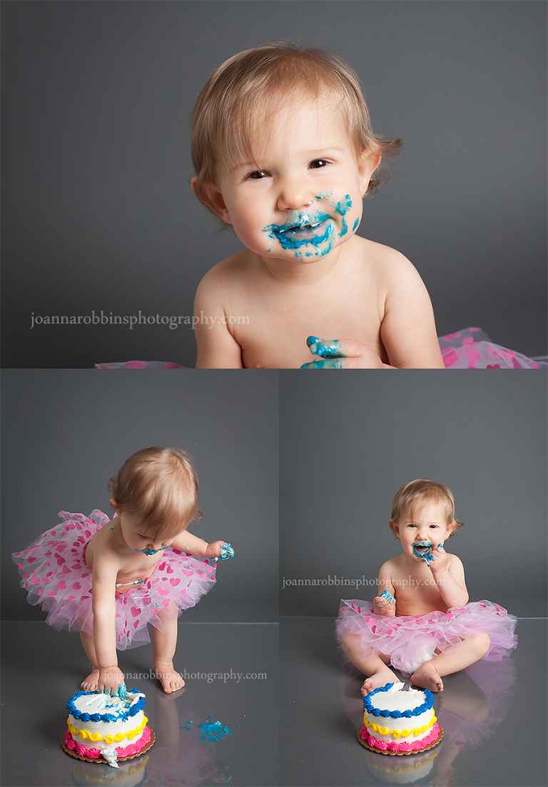 Miss M had just turned one, so a few days later we had a cake smash/portrait session for her. I’ve said it 1000 times…I LOVE cake smashes! The portrait part of these sessions tend to be short, because the attention span of a one year old is fairly short, and I’m usually pretty excited to get to the good part. 🙂 I love when they dive in like she did. As soon as she saw the cake, her face lit up and she was on it!