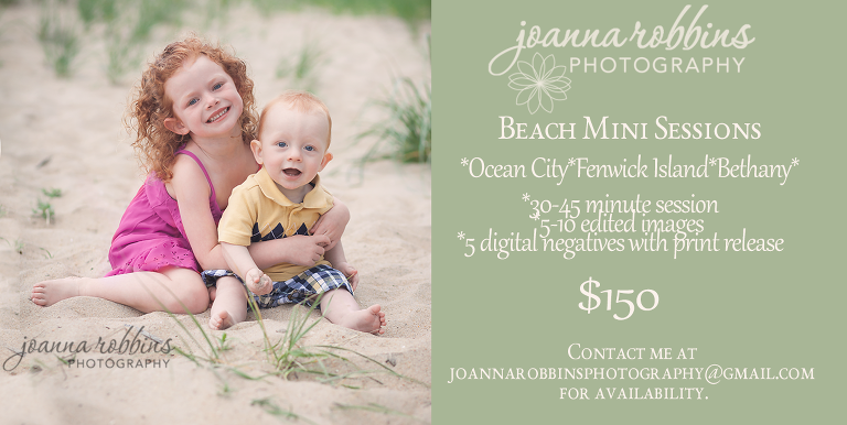 I love beach pictures! I’m excited about my Ocean City mini sessions, and I still have some availability for beach mini sessions, specifically the last week in July. If you’re interested in setting up a session, contact me at joannarobbinsphotography@gmail.com.