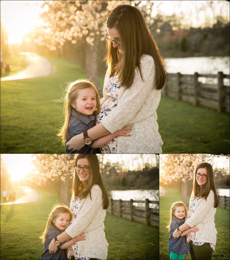 For the maternity session, we met at Centennial Park in Ellicott City, which is a great location that I don’t use nearly enough! The cherry blossoms were blooming, and it was a beautiful evening.
