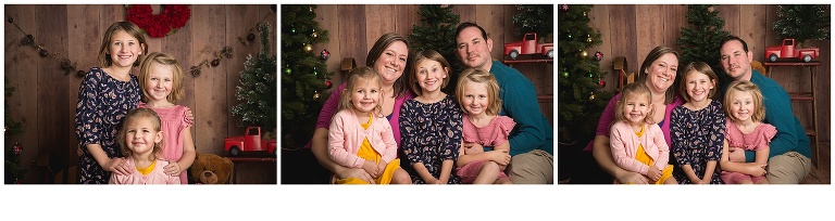 I always have a couple different backdrops. The one I mostly use for families is the simple couch setup. I love it because it’s classic, timeless, and simple. It can be Christmas-y depending on your outfits, or it can be something you hang on your wall all year long! I also have another setup that it similar to what I use for Santa pictures. My Santa/Christmas setup for 2019 will be a bit different than the pictures I’ll share below (but you’ll see my setup for this year at the end of this post!). Depending on how many people are in your family, you may be able to squeeze in for a family shot here as well.