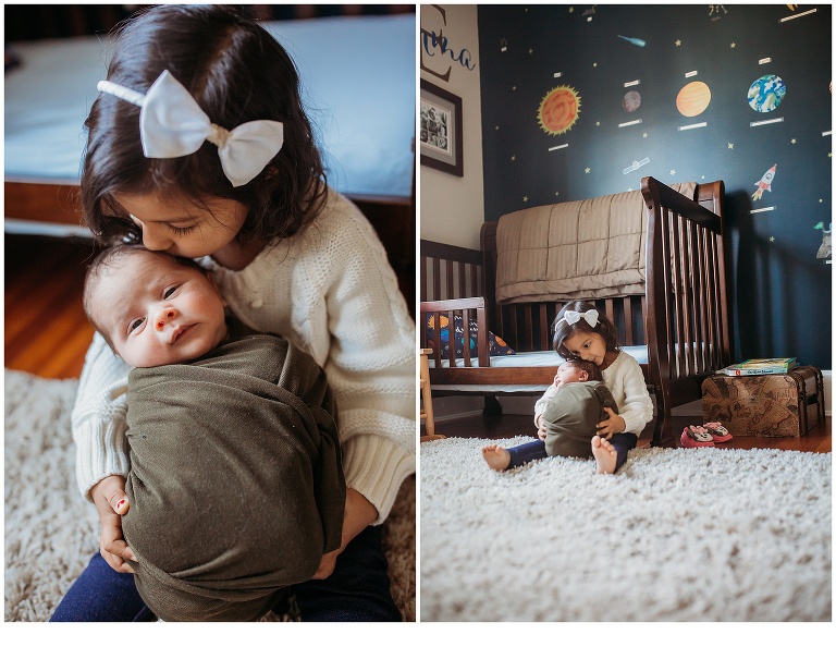 Beautifully documented this family before and after their baby arrived. I love seeing their home and so will this little man as he grows. The last image of big sister holding him is precious.